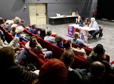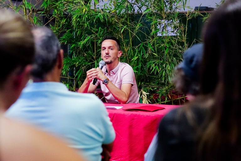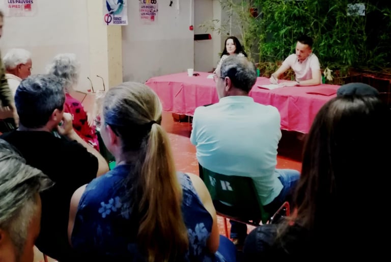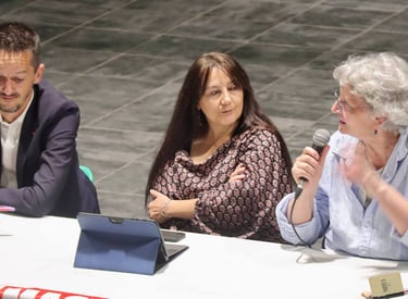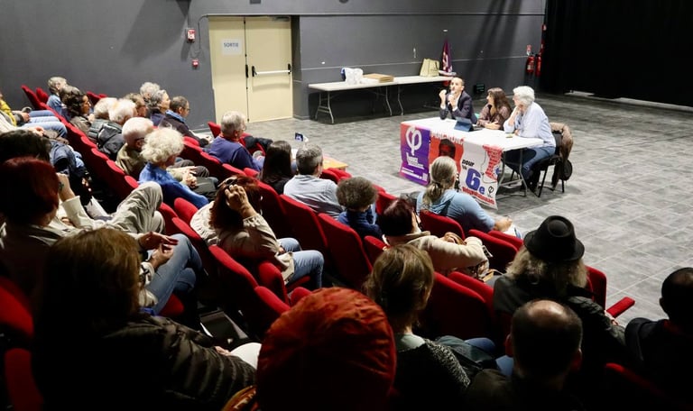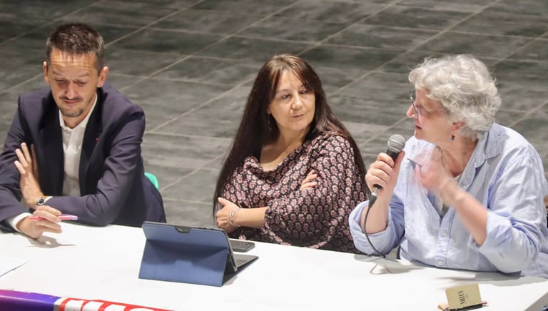 La soirée a été introduite par Caroline Borras chef de file LFI pour Prades-le-lez , qui a présenté les intervenants et replacé le débat dans le contexte local et national.