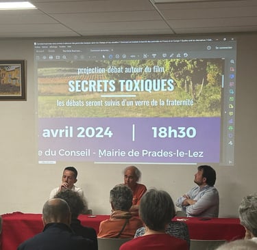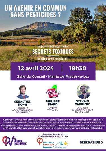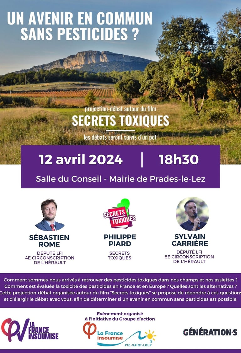 Projection du film "secrets toxiques", suivie d'une conférence débat avec Philippe Piard de l'association secrets toxiques, Sylvain Carrière député LFI de la 8ème circonscription de l'Hérault et Sébastien Rome député LFI de la 4ème circonscription de l'Hérault